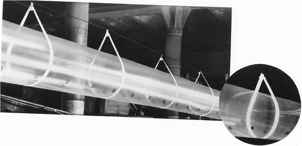 Sus-Hoops are made from a solid, tear-resistant, woven reinforced polyethylene. This material is specifically chosen for its durability and ability to withstand the rigors of supporting heavy tubing over long periods. The strength of the Sus-Hoops ensures that they will outlast the tubing itself, providing long-term value and reducing the need for frequent replacements.